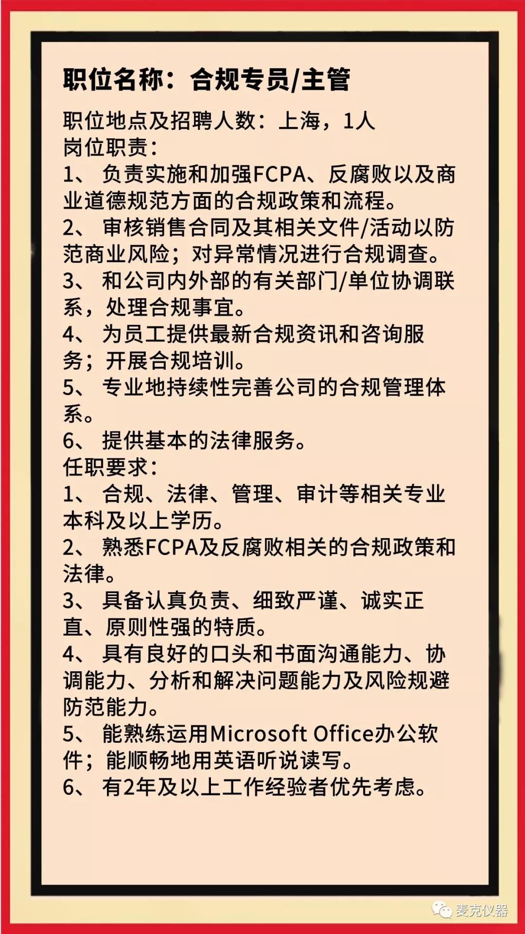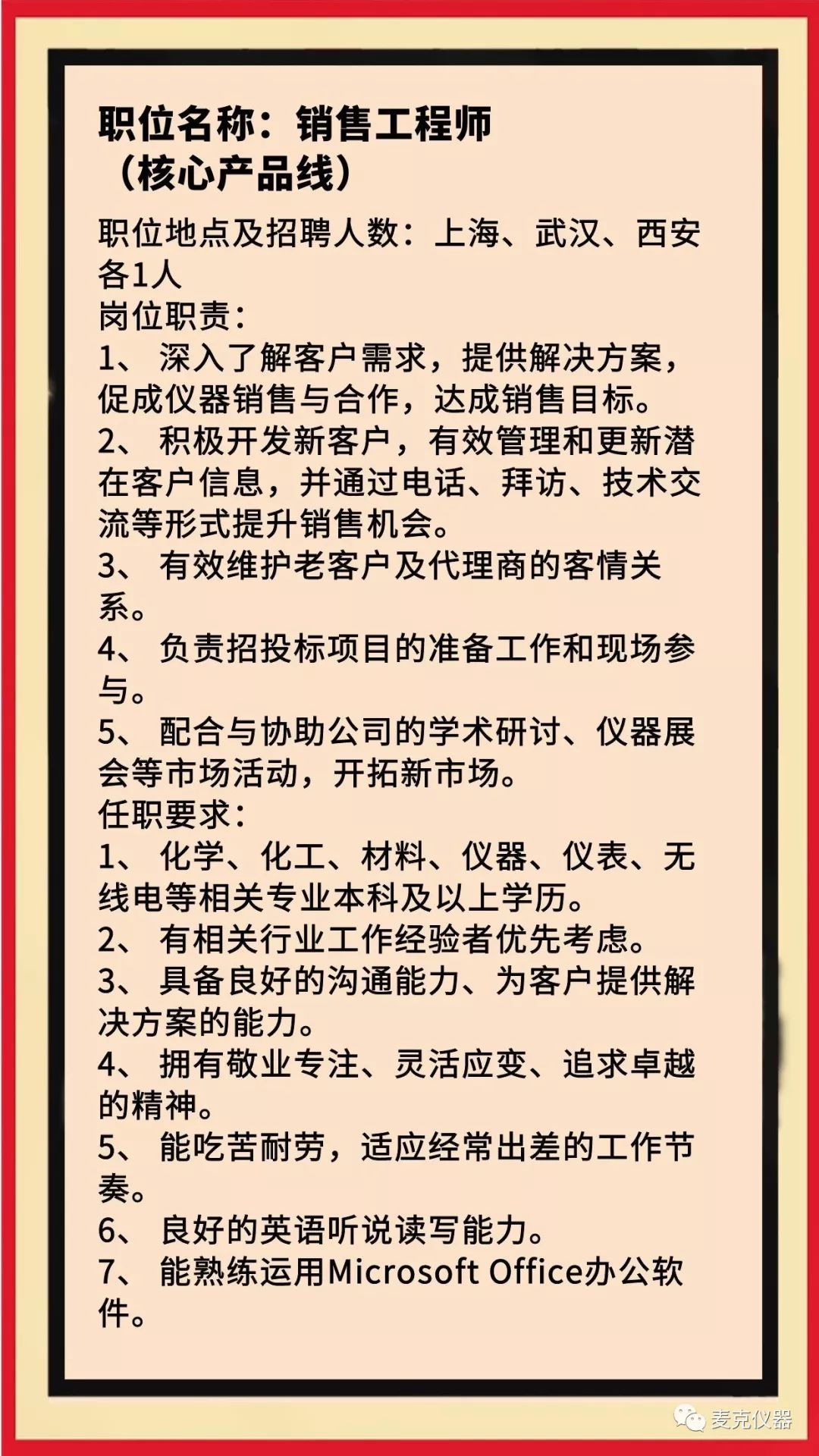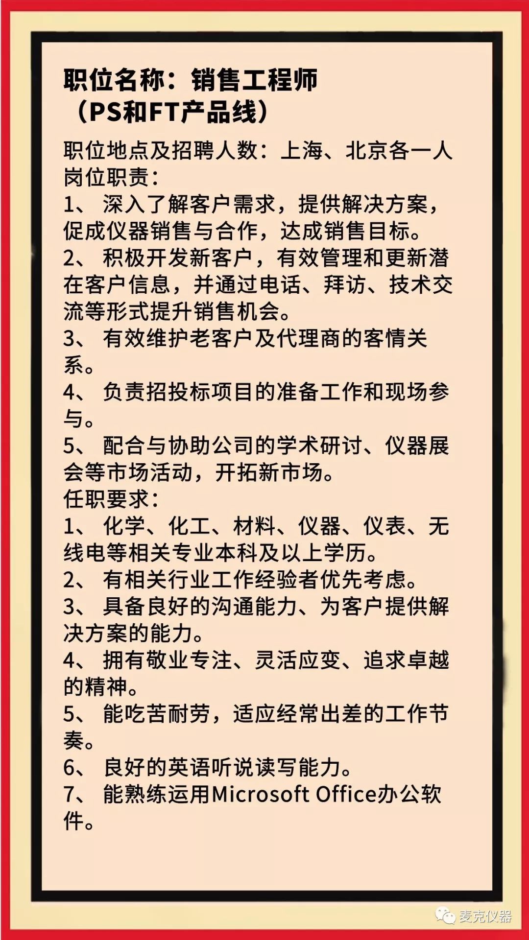 如各位童鞋们对麦克仪器以上职位有意,请将您的简历直接发送至